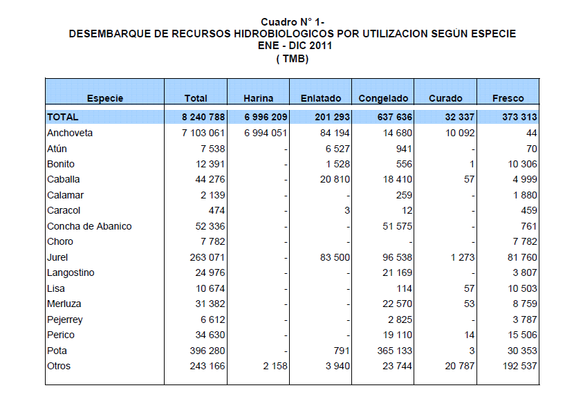 - 페루, 2011년 수산물 생산량 자료 발표