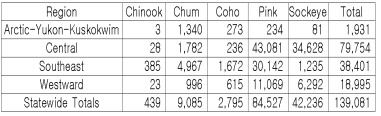 알래스카 연어 어획량 1억4천만마리