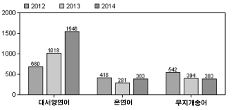 <12~14년 상반기중 연어․송어류 수출량 대비(천톤)>