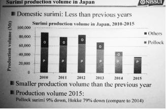 최근 미국 오리건주(州) 아스토리아 시에서 개최된 ‘미국 연육포럼’에서 유명 연육 공급업체인 Future Seafood 사의 파스칼 구엔니구에스 사장이 발표한 자료에 따르면, 올해는 명태와 퍼시픽화이팅 연육의 생산이 급증해 연육산업에 심각한 우려와 함께 시장붕괴의 위기까지 불러올 수 있을 것으로 전망됐다.