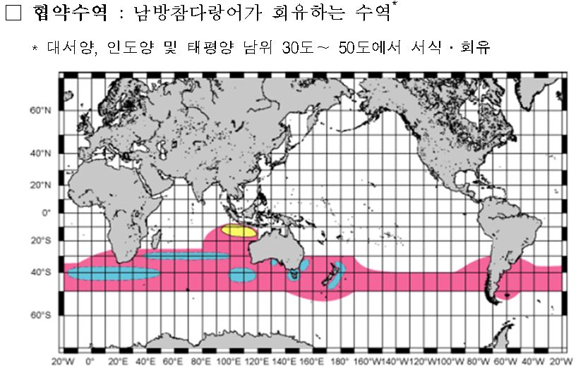남방참다랑어보존위원회는 대서양․인도양․태평양의 남위 30~50도 수역에서 서식․회유하는 남방참다랑어의 보존 및 지속가능한 이용을 위해 설립된 국제수산기구로, 현재 우리나라 등 8개국*이 가입하여 활동하고 있다.