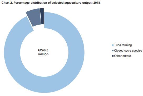 몰타 통계청은 2018년 양식업 총 생산량은 2017년 대비 18.9% 증가한 239.2백만 유로에 달한다고 밝혔다.