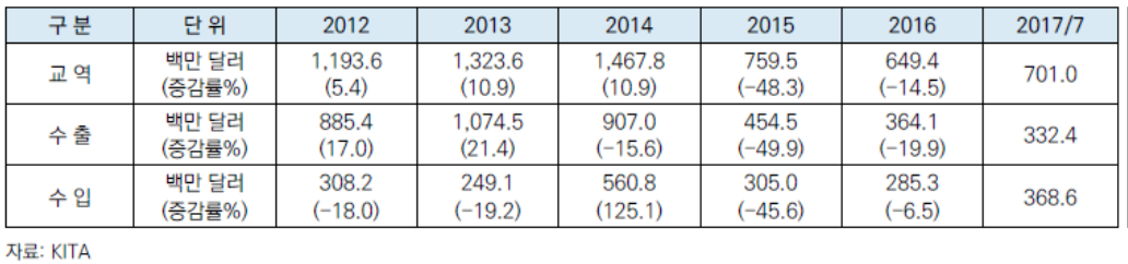 표 3 최근 5년간 한국의 카자흐스탄 수출입 현황
