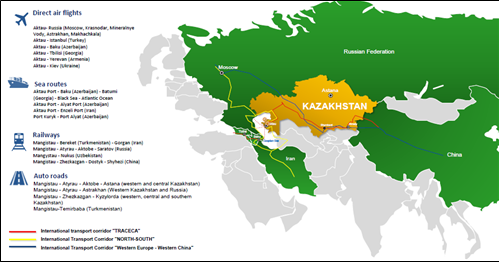 카자흐스탄의 카스피 해를 어업적인 측면에서 가장 효과적으로 인접하고 지역이 아타우 시티를 중심으로 펼쳐진 망이스타우 지역이다. 이 지역은 카자흐스탄의 대표적인 항구도시를 갖고 있으며 전체 면적은 165,645 ㎢의 면적으로 인구는 687,000명 정도이고 석유산업이 특히 발달하였다. 이 지역에 접근하는 방법으로 매우 다양한 교통수단을 갖고 있다. 항공과 철도 그리고 해운은 이 지역을 접근하는 효과적인 교통수단이다. 아타우시는 이 지역의 대표적인 도시로 인구 200,000명 정도의 도시이다. 아타우 시티는 국제공항을 갖고 있어 러시아의 6개 도시와 연결되어 있으며, 터키의 이스탄불, 아자르바이잔, 이란, 아르메니아, 조지아 및 우크라이나 등의 주요 도시와 직항이 연결되어 있다. 철도는 역시 투르크메니스탄, 조지안, 이란, 러시아, 우즈베키스탄, 및 중국 등과 연결되어 있다. 해운교통수단 역시 카스피 해를 기반으로 인근 4개 국가의 항국와 연결되어 있다. 자동차 교통을 효과적으로 활용할 수 있는 도로망도 인근 국가와 연결되고 있다. 아래 그림 2는 망이스타우 지역을 연결하는 교통수단을 보여주고 있다.