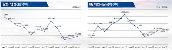 - 생산금액은 저가 어종의 생산량 증가로 0.9% 증가한 4조 489억 원임