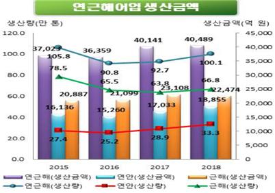 ㅇ 2018년 연근해어업 생산량(추정)은 100.1만 톤으로 2017년(92.7만 톤) 대비 7.9% 증가
