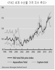 이 때문에 FAO의 수산물 가격지표는 자연산 수산물을 중심으로 장기간 높은 가격을 형성할 것으로 전망하고 있다.