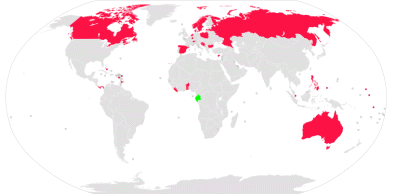 붉은색 : 협약비준국, 그린색 : 비준했으나, 공식절차 미결상태