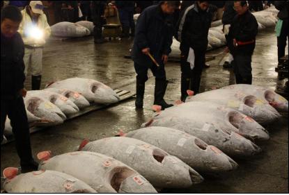 자연산 냉동 남방참다랑어는 경제성이 있어 지물(脂物)은 초밥 집 등에서 거래 문의가 많은 반면 아까미 부분은 색깔이 진해 기피하고 있는 것으로 보인다.