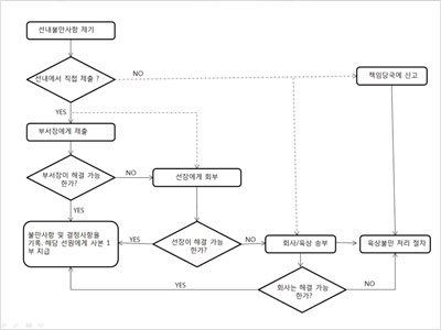 우리 협회는 최근 ‘선내 불만 처리 절차<국문, 그림 참조>’ 게시 의무화와 관련한 선원법 개정안을 회원사에 안내하면서 선내 불만처리 절차 게시를 철저히 이행해 불이익을 받지 않도록 유의해 줄 것을 당부했다.
