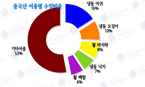 주요 수입어종은 냉동 아귀, 냉동 오징어, 활 바지락, 냉동 낙지와 냉동 백합 순이었으며 냉동 아귀, 냉동 오징어, 냉동 낙지와 냉동 백합의 수입량은 늘어났지만 활 바지락은 줄어들었다.