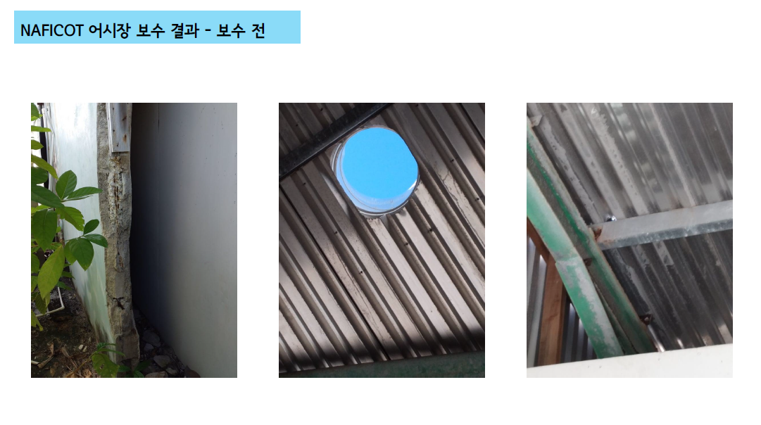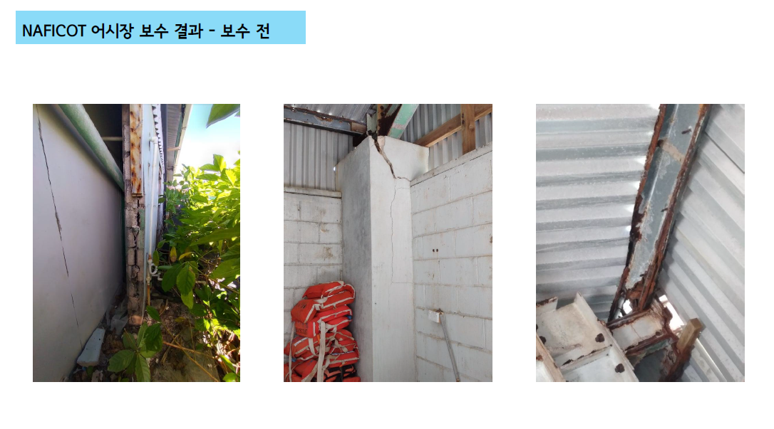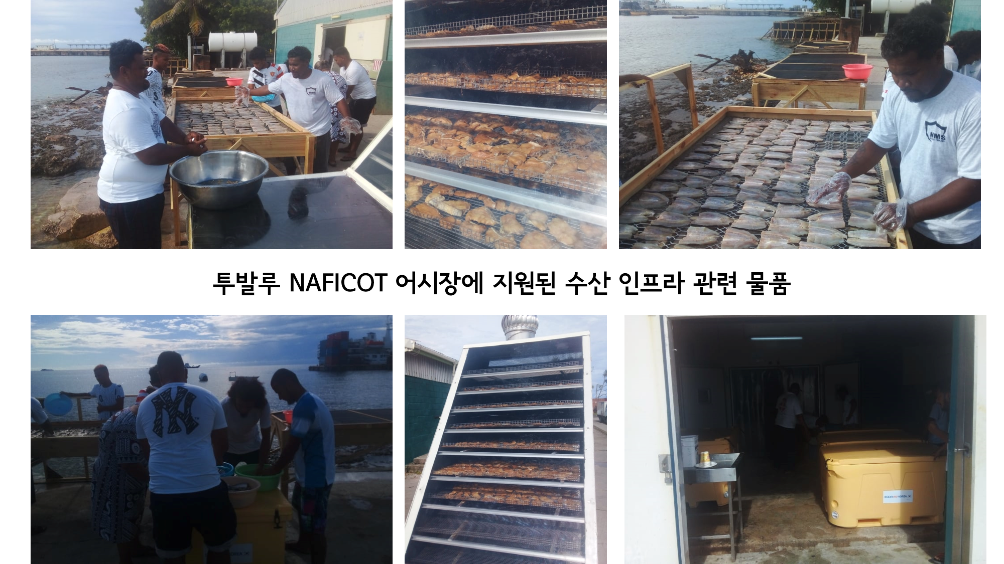 사업비 350백만원이 소요되었으며, 투발루 수산업에 필요한 장비(산업용 제빙기, 어류 훈연기, 냉동고 등) 12개 품목 223개 물품 및 현지 어시장(NAFICOT) 보수공사를 지원하였습니다.