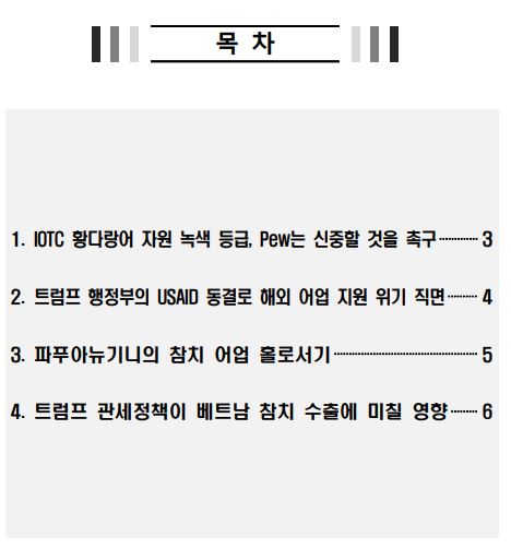 | 제목 | 해외수산협력센터 국제수산동향 '25년 2월호 | |||